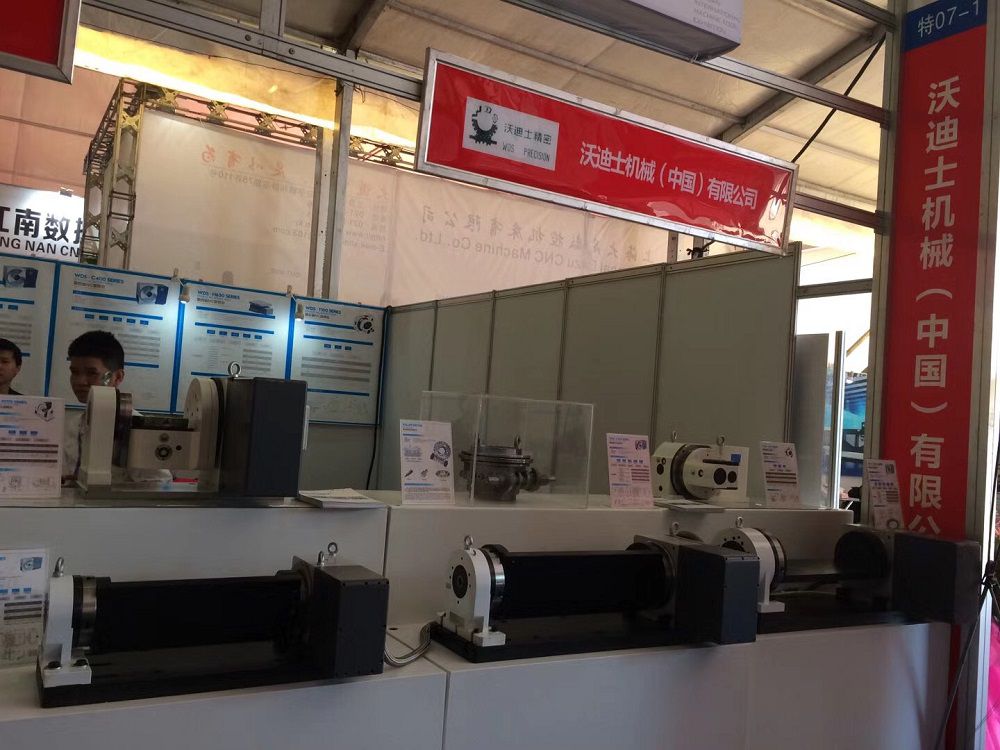 沃迪士在本次展覽會上展出的四軸回轉(zhuǎn)工作臺、五軸數(shù)控轉(zhuǎn)臺吸引了大家的眼球。高剛性,高速度,正反轉(zhuǎn)零背隙,這些都是我們凸輪滾子轉(zhuǎn)臺的優(yōu)點。